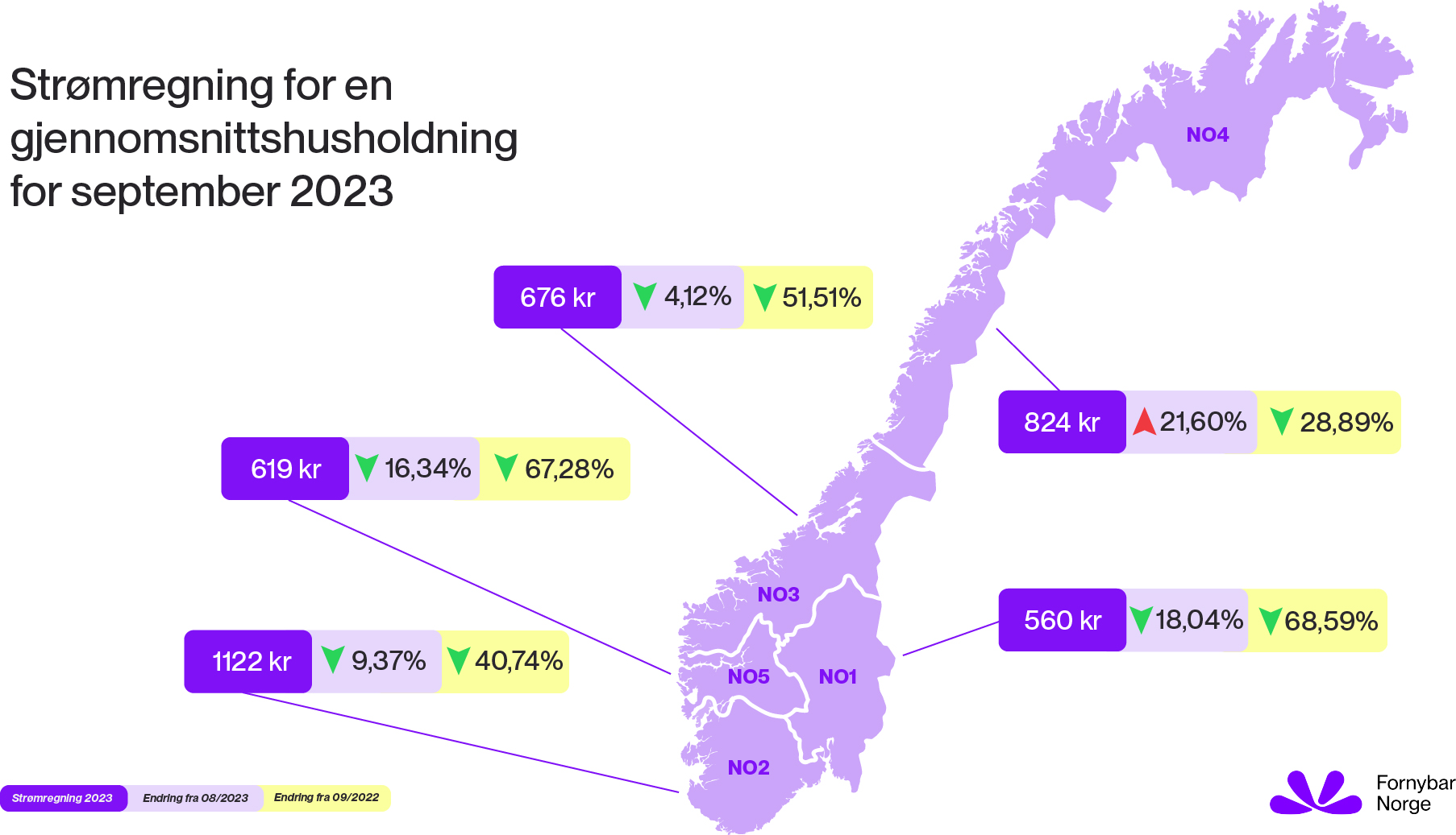 Store nedbørsmengder gjorde at spotprisene på strøm falt i september. Husholdninger over hele landet, med unntak av i Nord-Norge, kan derfor forvente seg lavere strømregninger for september enn de fikk for august, viser Fornybar Norges nye strømprisindeks.